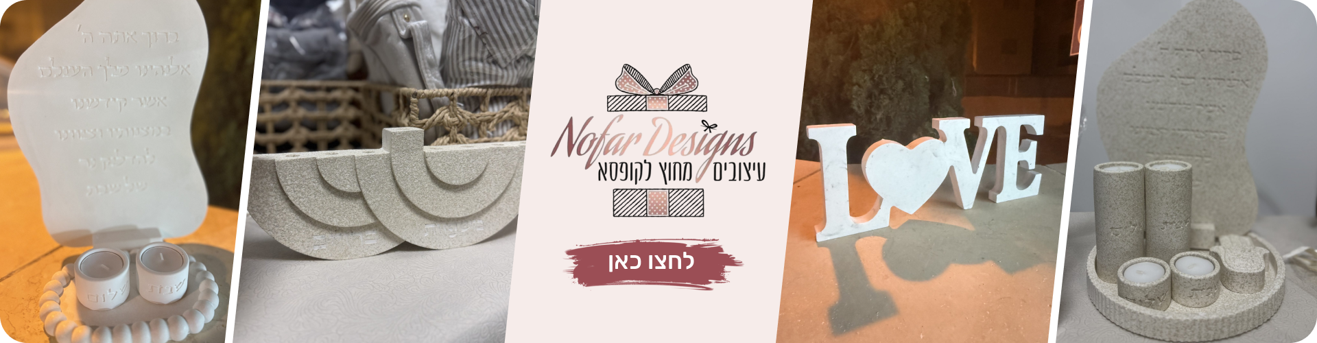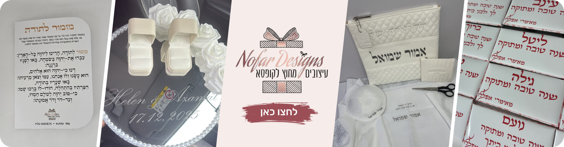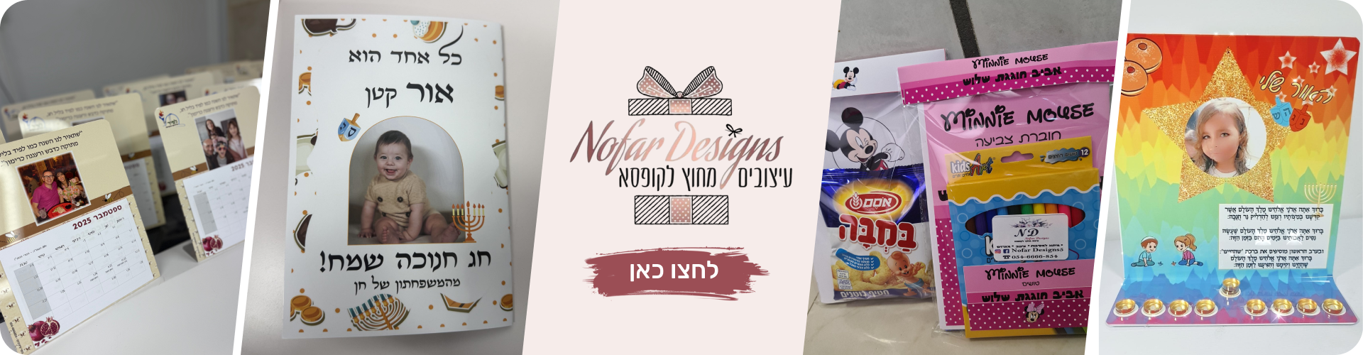 באתר נופר דיזיין תמצאו מגוון מבצעים משתלמים על מתנות ממותגות, מוצרי עיצוב ייחודיים וערכות לגני ילדים ולבתי ספר. המבצעים מתעדכנים באופן שוטף ומאפשרים ליהנות ממחירים נוחים מבלי להתפשר על איכות, יצירתיות ושירות אישי. זו ההזדמנות לרכוש מתנות עם ערך חינוכי ועיצוב מרהיב – במחיר משתלם במיוחד.