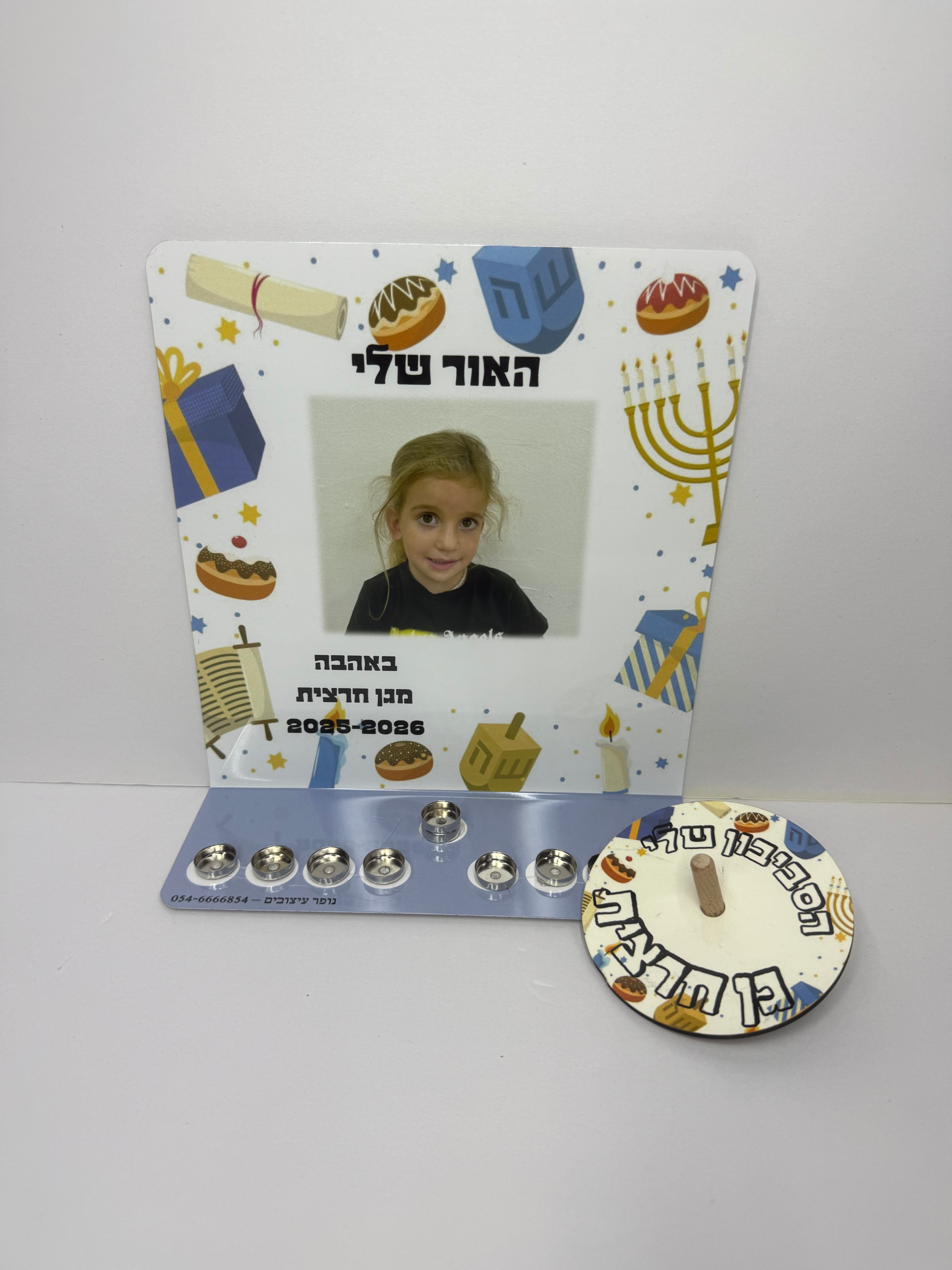 / חנוכיה וסביבון מעץ